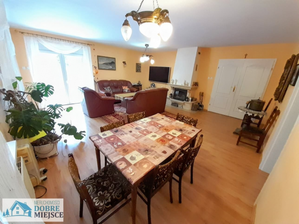 Dom jest w bardzo dobrym stanie technicznym i jest gotowy do zamieszkania . Elegancka, biała elewacja została wzbogacona o drewniane belki i filary, które nadają bryle ponadczasowy charakter dworku. Całość dopełnia estetyczne metalowe ogrodzenie z ceglanymi słupkami oraz brama wjazdowa sterowana zdalnie .