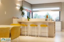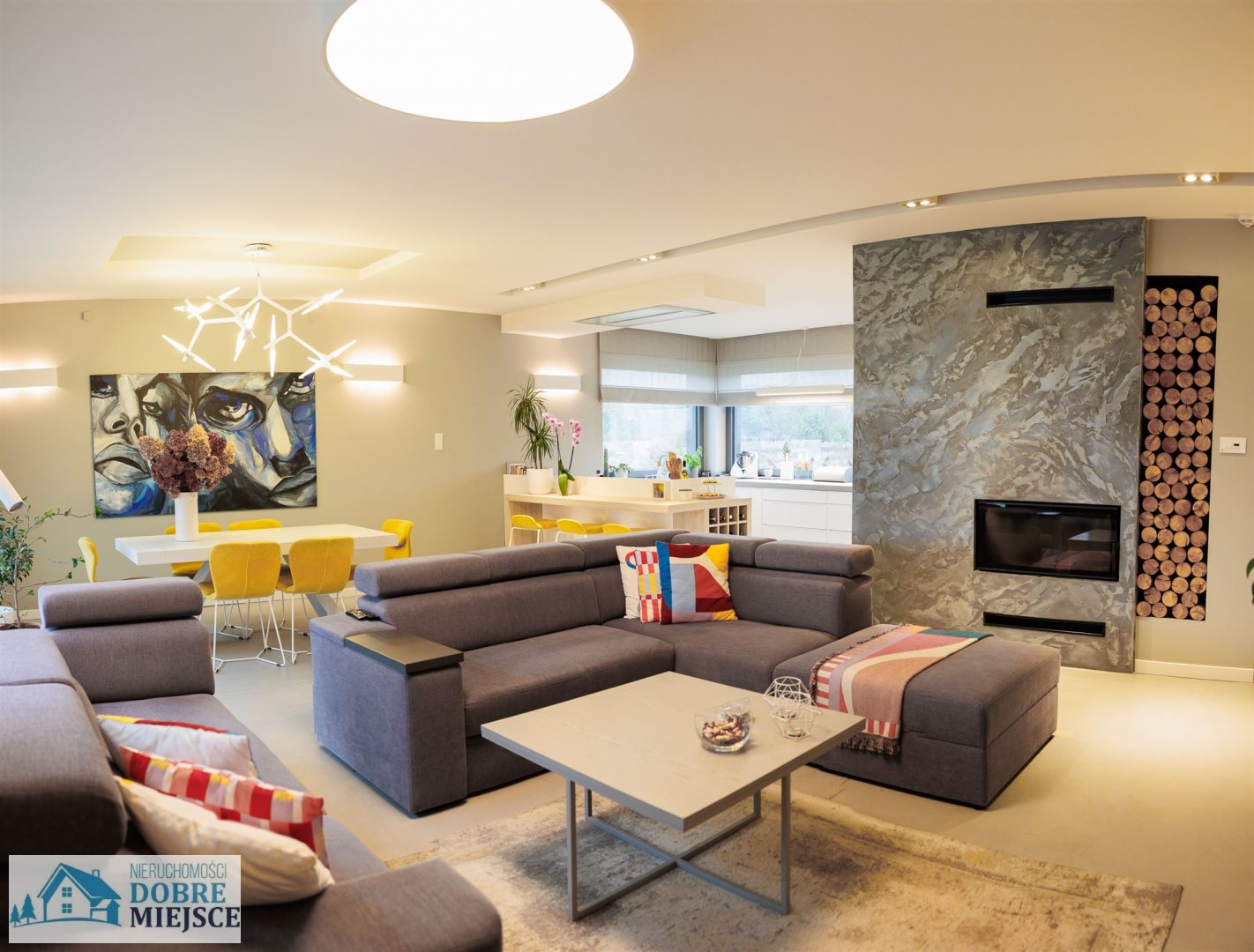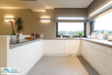 - przestronny i jasny salon (część wypoczynkowa, kominek) z częścią jadalną - 43,4m² oraz kuchnią ( w pełni wyposażona w płytę indukcyjną wraz z okapem, dużą lodówkę, zmywarkę, piekarnik, mikrofalówkę, itd.) wraz ze spiżarnią - 16,7 m²,