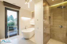 - łazienka główna z wanną oraz prysznicem, toaletą oraz dwiema umywalkami - 12,1m²,