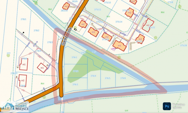 Na sprzedaż działka budowlana w Przyłękach pod Bydgoszczą, z aktualnymi warunkami zabudowy na dom jednorodzinny. Nieruchomość położona jest w wyjątkowym miejscu - pomiędzy dwoma kanałami, z bezpośrednim dostępem do wody z pięknym przedpolem widokowym. Dojazd zapewnia utwardzona ulica Gwieździsta. W bieżącym roku przewidziane jest podłączenie wodociągu. W pobliżu znajdują się nowe zabudowania oraz przyłącze energetyczne.