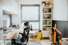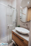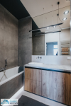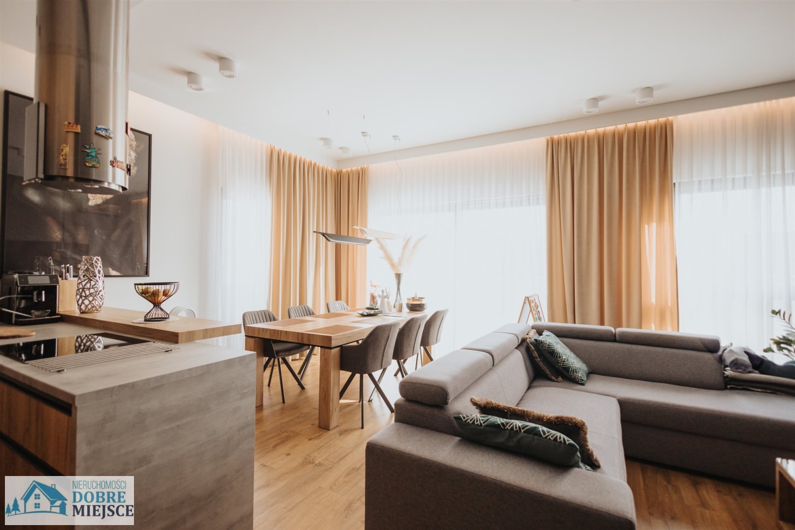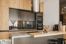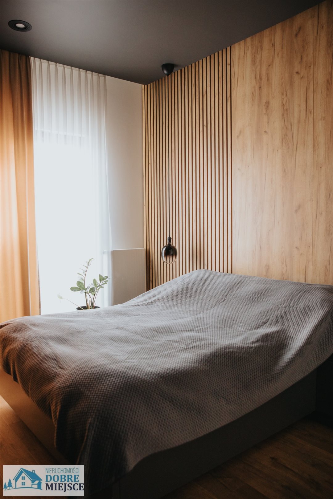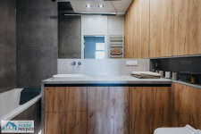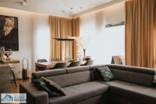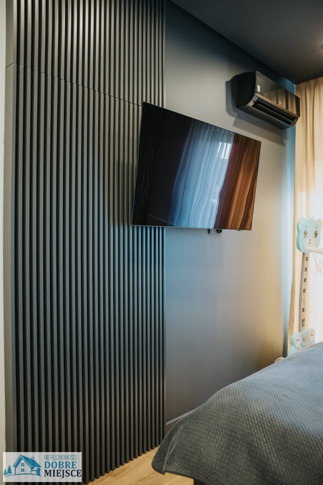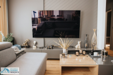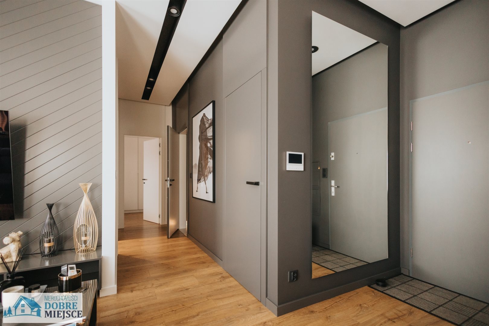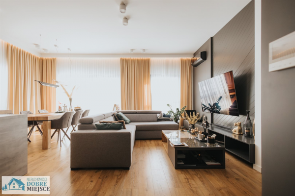 Mieszkanie zostało wykończone z dbałością o każdy detal, z zastosowaniem materiałów najwyższej jakości. Nowoczesny design, połączony z funkcjonalnymi rozwiązaniami, tworzy harmonijną i elegancką przestrzeń.