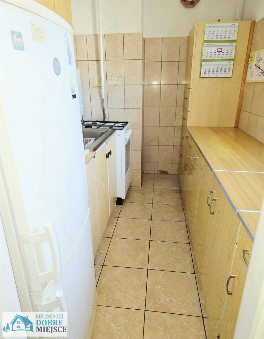 Nieruchomość składa się z przedpokoju, w którym znajduje się miejsce na dużą (choć węższą niż standardowa) zabudowę typu komandor, łazienki z prysznicem i WC, dużego pokoju z wyjściem na balkon , a także przejściem do ustawnej sypialni oraz oddzielnej, jasnej kuchni z oknem.