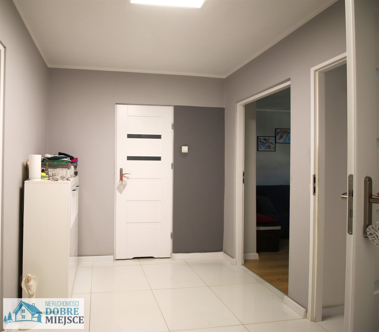To wnętrze pokochasz już od progu: p rzestronny przedpokój, wykończony nowoczesnymi, wielkoformatowymi kaflami , już od wejścia wprowadza elegancki klimat. Znajdziesz tu miejsce na dużą szafę, komodę czy przestronną szafkę na buty i wieszak na ubrania. Po obu stronach przedpokoju znajdują się drzwi do oddzielnych pokoi oraz kuchni, a na wprost - drzwi do łazienki.
