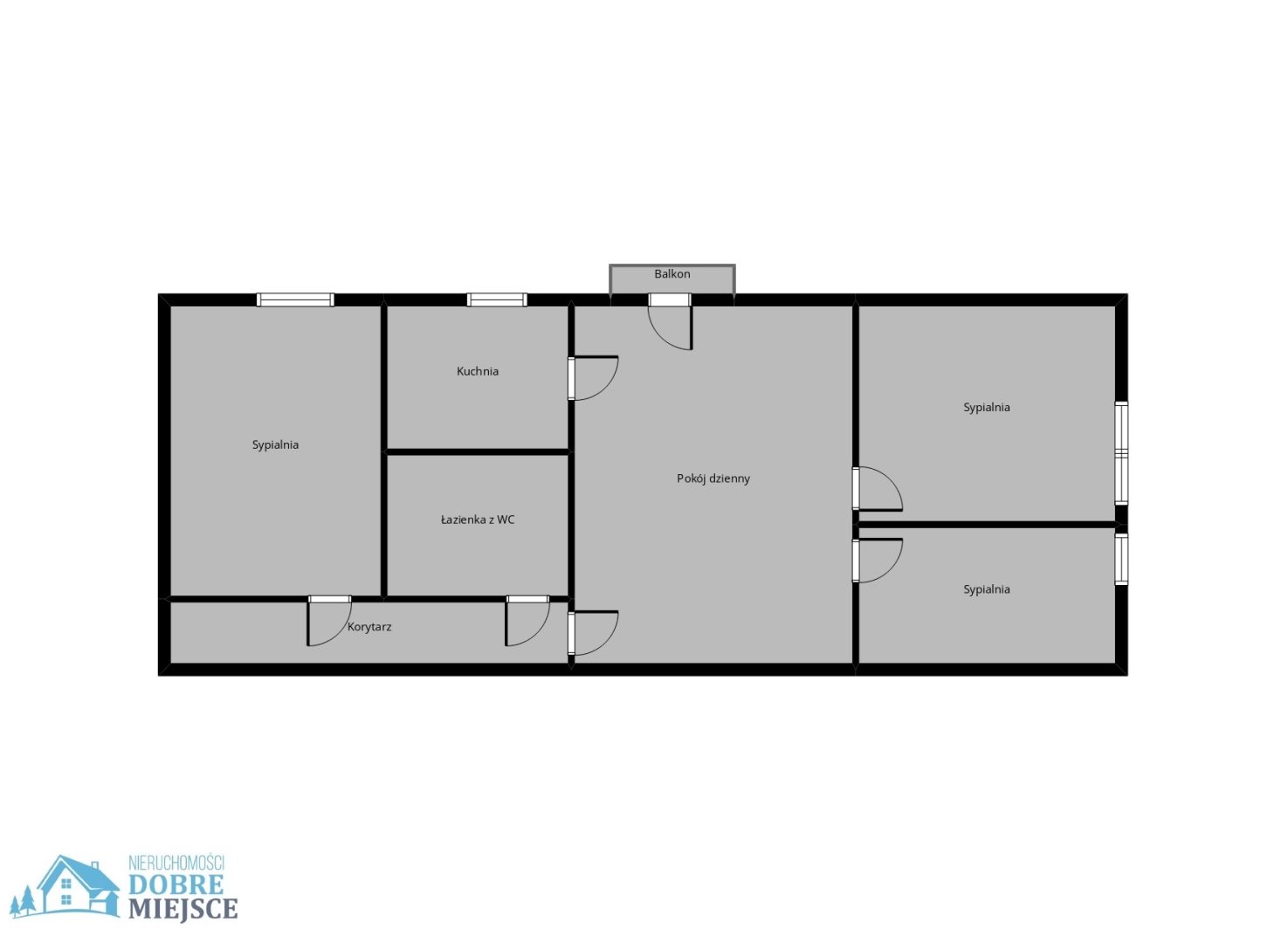 Nieruchomość składa się z zabudowanego szafami przedpokoju, nowoczesnej łazienki z prysznicem i WC, trzech osobnych sypialni, funkcjonalnie urządzonej kuchni, a także przejściowego salonu.