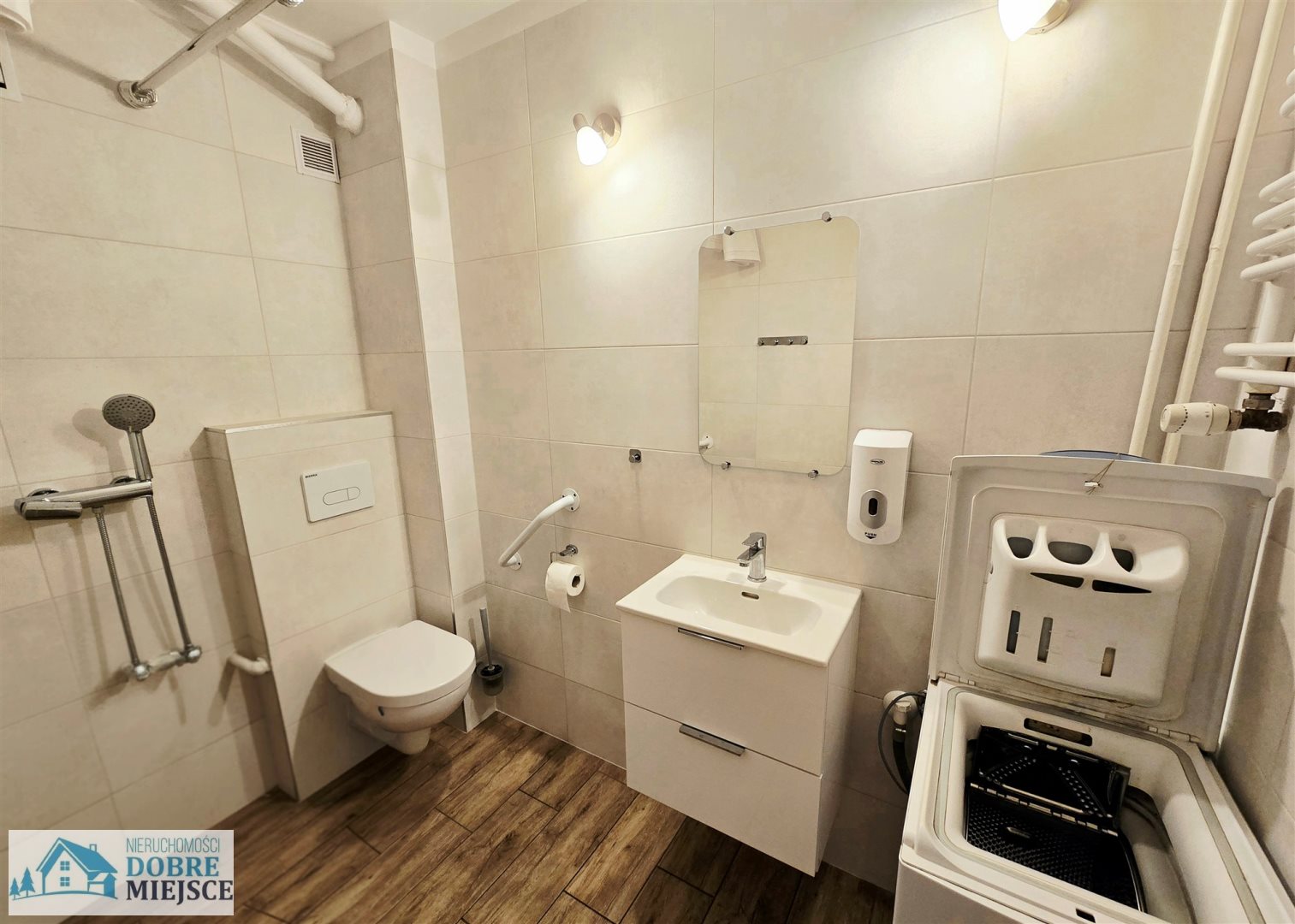 Największym atutem technicznym tego M-5 jest łazienka, która przeszła generalny remont zaledwie dwa lata temu. Została zaprojektowana w nowoczesnym, bezprogowym standardzie , co zapewnia niebywały komfort i bezpieczeństwo; przy okazji wymieniono w niej całą instalację elektryczną. Prysznic z odpływem liniowym , nowoczesna armatur a oraz udogodnienia dla osób o niepełnej sprawności są dodatkową zaletą tego pomieszczenia.