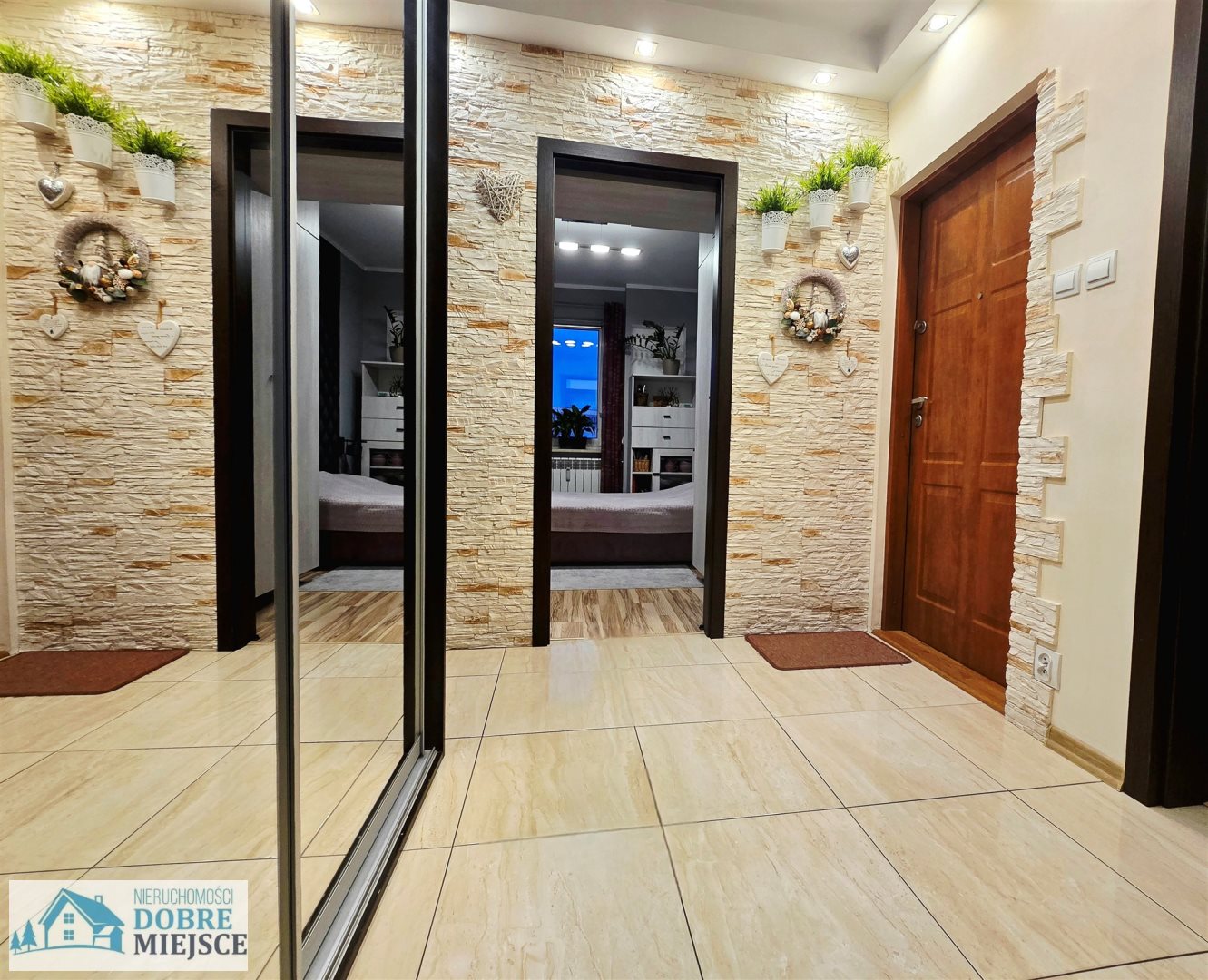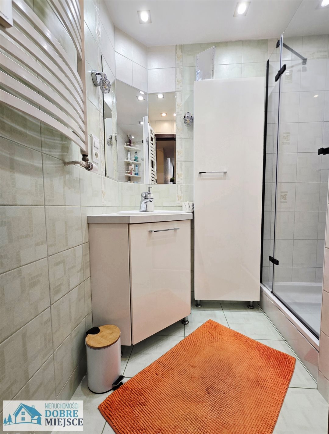 Komfort codziennego życia podnosi także nowoczesna łazienka z prysznicem oraz osobne WC , co przy większej liczbie domowników jest nieocenionym atutem. W przedpokoju wita nas kolejna szafa z lustrzanymi drzwiami , która optycznie powiększa przestrzeń i dodaje jej blasku.