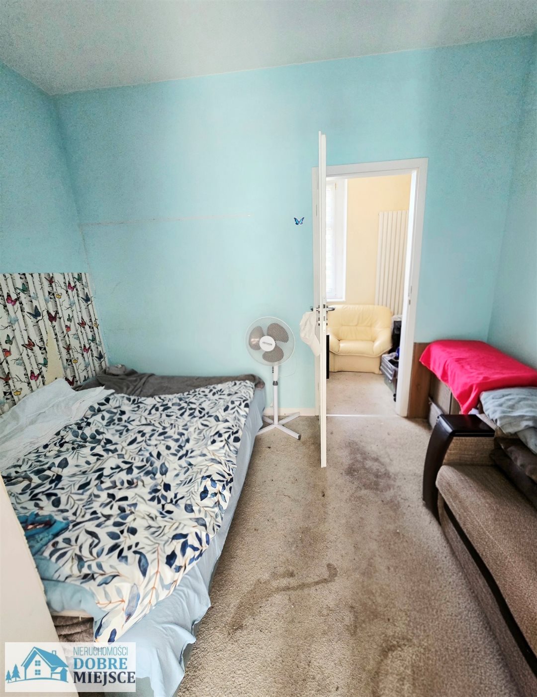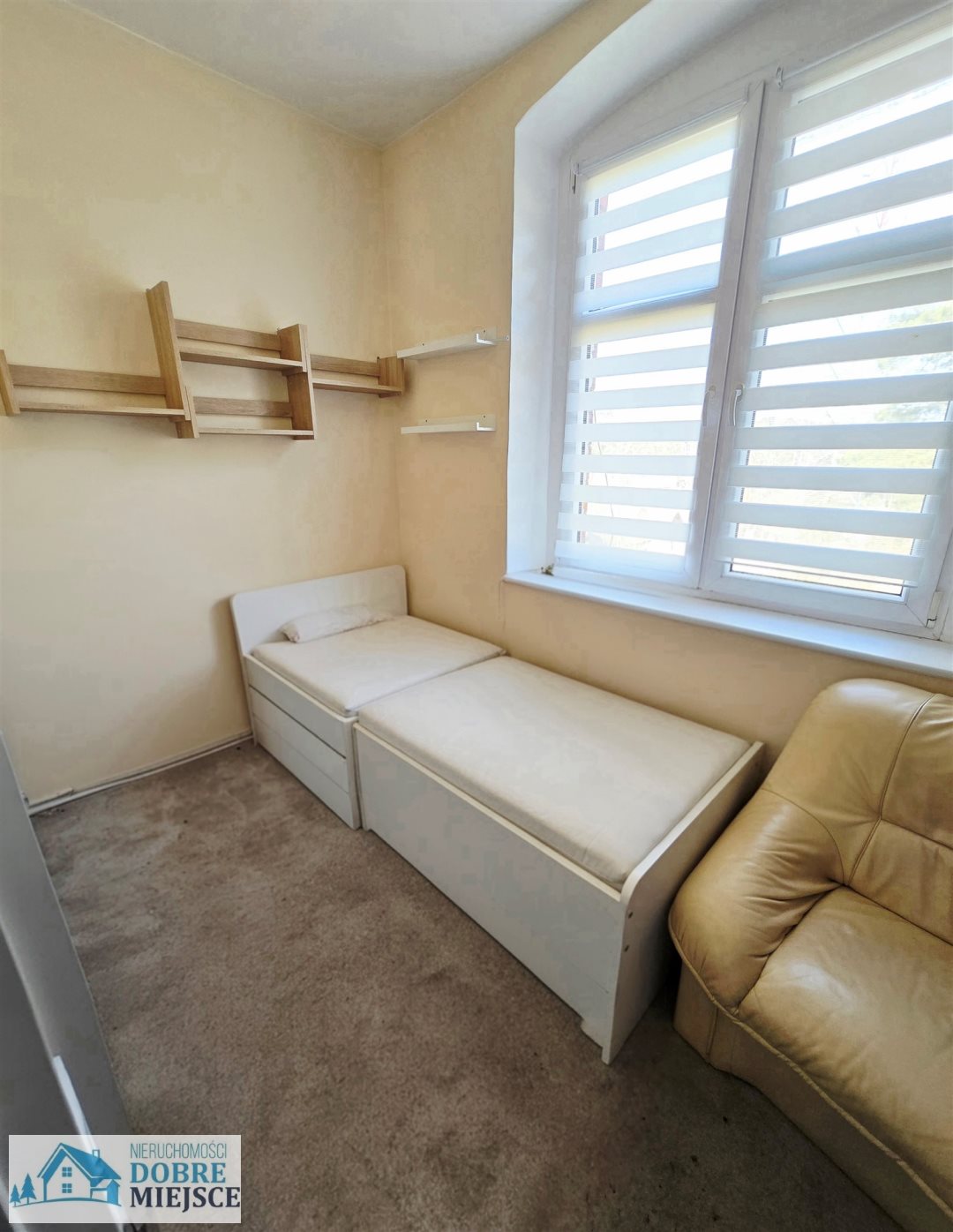 2. Dwie sypialnie (wydzielone): oryginalnie jeden duży pokój został podzielony ścianką z regipsu na dwa mniejsze, przytulne pokoje (idealne dla dzieci lub jako gabinet). Ściankę można łatwo zdemontować, by wrócić do pierwotnego układu 2-pokojowego.