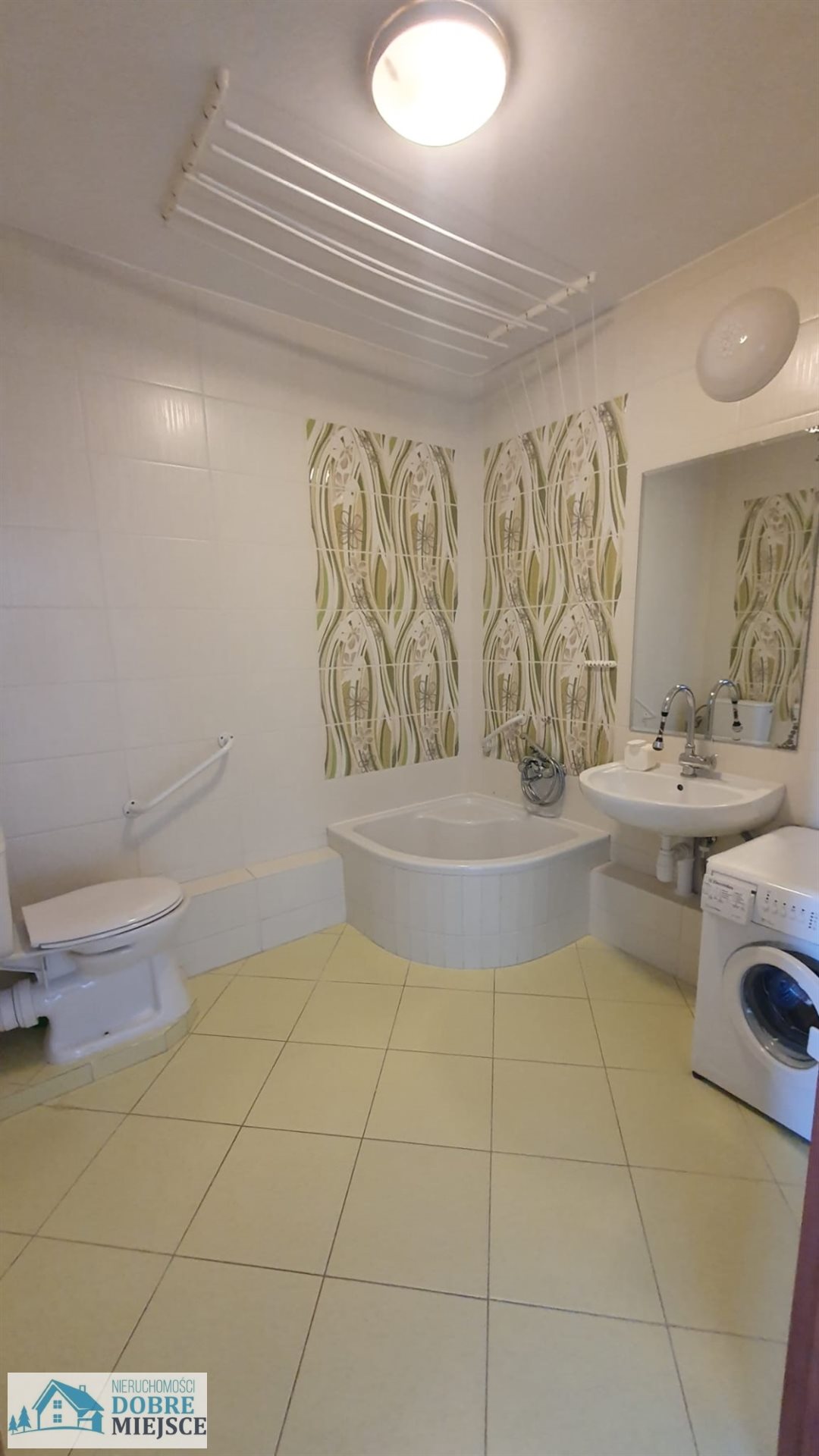 - łazienki z toaletą, w której znajduje się pralka, jest też dużo miejsca na przechowywanie rzeczy (wbudowane szafki do sufitu),